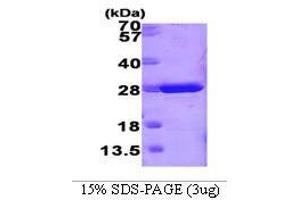 Purified recombinant Mouse GSTM1 protein Expression System: E.coli Bioactivity: Specific activity is 3 units/mg, and is defined as the amount of enzyme that conjugate 1.0 uM of 1-chloro-2,4-dinitrobenzene (CDNB) with reduced glutathione per minute at pH 6.5 at 25 °C. Molecular weight on SDS-PAGE will appear higher.