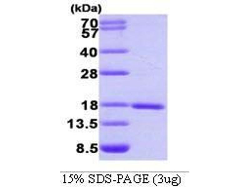 SUMO-1, also known as small ubiquitin-related modifier 1, is a member of the SUMO protein family and functions in a manner similar to ubiquitin. However, unlike ubiquitin which targets proteins for degradation, SUMO-1 protein participates in a number of cellular processes, such as nuclear transport, transcriptional regulation, apoptosis, and protein stability. Recombinant human SUMO1 protein was expressed in E. coli and purified by using conventional chromatography.