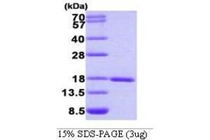 SUMO-1, also known as small ubiquitin-related modifier 1, is a member of the SUMO protein family and functions in a manner similar to ubiquitin. However, unlike ubiquitin which targets proteins for degradation, SUMO-1 protein participates in a number of cellular processes, such as nuclear transport, transcriptional regulation, apoptosis, and protein stability. Recombinant human SUMO1 protein was expressed in E. coli and purified by using conventional chromatography. Alternative Names: GMP1 protein, SMT3 homolog 3 protein, UBL 1 protein, SENP2 protein, GMP 1 protein, Sentrin 1 protein, UBL1 protein, Ubiquitin like protein SMT3C protein, PIC1 protein, PIC 1 protein, Ubiquitin like protein UBL1., SMT3 protein, SMT3 suppressor of mif two 3 homolog 1 isoform a protein, SMT3H3 protein, Sentrin protein, SMT3 suppressor of mif two 3 homolog 1 protein, Small ubiquitin related modifier 1 protein, SMT3C protein, DAP-1 protein, Ubiquitin Like 1 protein, SMT3 suppressor of mif two 3 homolog 1 isoform a GAP modifying protein 1 protein, OFC10 protein, Sumo1 protein, Ubiquitin homology domain protein PIC1 protein