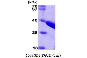Thiosulfate sulfurtransferase (TST), also known as Rhodanese, is a mitochondrial enzyme that is involved in cyanide detoxification and the modification of sulfur-containing enzymes. This protein contains two highly conservative domains, known as rhodanese homology domains. In mammals, most cyanide is converted to thiocyanate by this enzyme. TST also has weak mercaptopyruvate sulfurtransferase activity. Recombinant TST protein was expressed in E. coli and purified by using conventional chromatography techniques. Alternative Names: RDS protein, TST protein, Rhodanese protein, Thiosulfate Sulfurtransferase