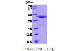 ANXA4 belongs to the annexin family of calcium-dependent phospholipid binding proteins. Although their functions are still not clearly defined, several members of the annexin family have been implicated in membrane-related events along exocytotic and endocytotic pathways. Isolated from human placenta, this protein has possible interactions with ATP, and has in vitro anticoagulant activity and also inhibits phospholipase A2 activity. ANXA4 is almost exclusively expressed in epithelial cells. Recombinant ANXA4 protein was expressed in E. coli and purified by using conventional chromatography techniques.