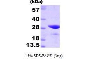 FK506 binding protein 3 (FKBP3), also known as FKBP25, is a member of the immunophilin protein family, which play a role in immunoregulation and basic cellular processes involving protein folding and trafficking. FKBP3 associates with transcriptional repressor protein YY1 and histone deaceltylases, HDAC1 and HDAC2. Also, FKBP3 may contain several casein kinase II phosphorylation sites, which are believed to be important for cell growth regulation. It is localized in the nucleus and is expressed in the brain, testis, ovary, and spleen. Recombinant human FKBP3 was expressed in E. coli and purified by using conventional chromatography techniques. Alternative Names: PPIase protein, FK506 binding protein 3 FKBP 25 protein, FKBP-3 protein, FKBP3, PPIase FKBP3 protein, FKBP-3, Rotamase protein, Rotamase., FKBP25 protein, FKBP 3, FKBP 3 protein, FKBP 3 protein