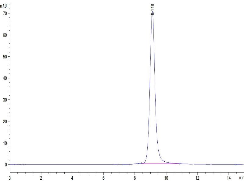 The purity of the protein is greater than 95 % as determined by SDS-PAGE and Coomassie blue staining.