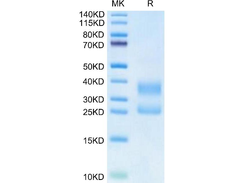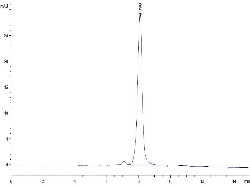 The purity of the protein is greater than 90 % as determined by SDS-PAGE and Coomassie blue staining.