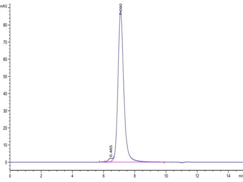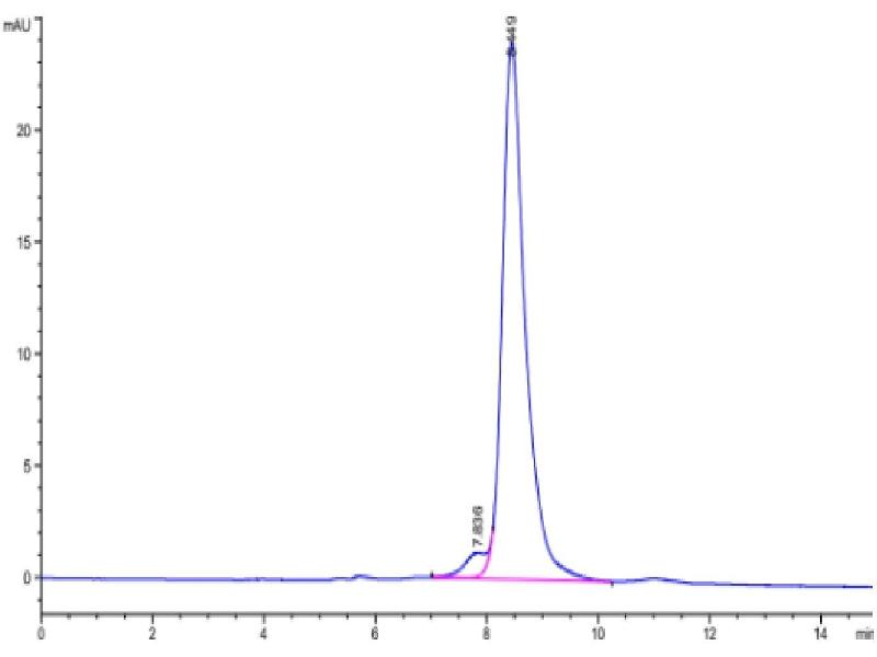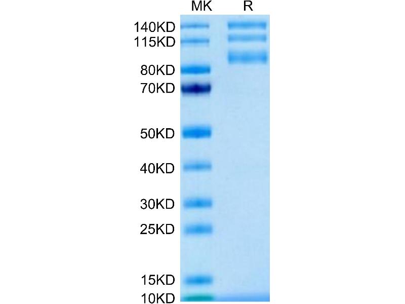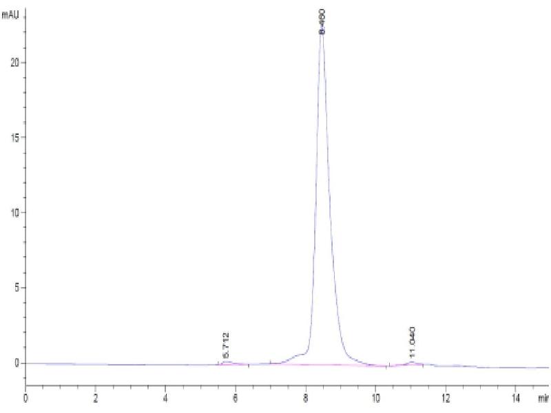The purity of the protein is greater than 95 % as determined by SDS-PAGE and Coomassie blue staining.