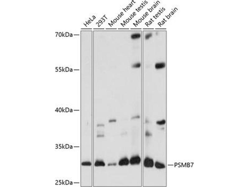 The proteasome is a multicatalytic proteinase complex with a highly ordered ring-shaped 20S core structure. The core structure is composed of 4 rings of 28 non-identical subunits\; 2 rings are composed of 7 alpha subunits and 2 rings are composed of 7 beta subunits. Proteasomes are distributed throughout eukaryotic cells at a high concentration and cleave peptides in an ATP/ubiquitin-dependent process in a non-lysosomal pathway. The encoded protein is a member of the proteasome B-type family, also known as the T1B family, and is a 20S core beta subunit in the proteasome. Expression of this catalytic subunit is downregulated by gamma interferon, and proteolytic processing is required to generate a mature subunit. A pseudogene of this gene is located on the long arm of chromosome 14. [provided by RefSeq, Jul 2012].