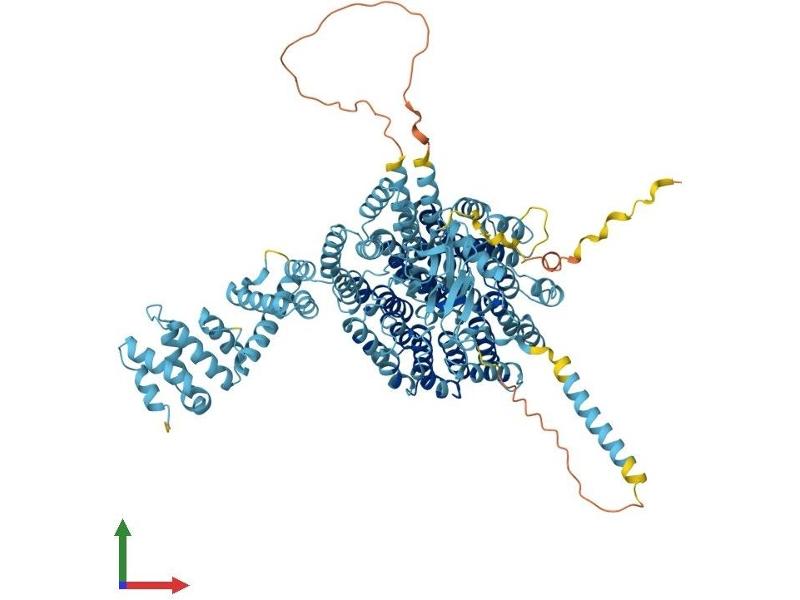 The 26S proteasome is a multicatalytic proteinase complex with a highly ordered structure composed of 2 complexes, a 20S core and a 19S regulator. The 20S core is composed of 4 rings of 28 non-identical subunits\; 2 rings are composed of 7 alpha subunits and 2 rings are composed of 7 beta subunits. The 19S regulator is composed of a base, which contains 6 ATPase subunits and 2 non-ATPase subunits, and a lid, which contains up to 10 non-ATPase subunits. Proteasomes are distributed throughout eukaryotic cells at a high concentration and cleave peptides in an ATP/ubiquitin-dependent process in a non-lysosomal pathway. An essential function of a modified proteasome, the immunoproteasome, is the processing of class I MHC peptides. This gene encodes the largest non-ATPase subunit of the 19S regulator lid, which is responsible for substrate recognition and binding. Alternatively spliced transcript variants have been found for this gene.[provided by RefSeq, Jul 2010].