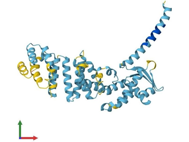 The 26S proteasome is a multicatalytic proteinase complex with a highly ordered structure composed of 2 complexes, a 20S core and a 19S regulator. The 20S core is composed of 4 rings of 28 non-identical subunits\; 2 rings are composed of 7 alpha subunits and 2 rings are composed of 7 beta subunits. The 19S regulator is composed of a base, which contains 6 ATPase subunits and 2 non-ATPase subunits, and a lid, which contains up to 10 non-ATPase subunits. Proteasomes are distributed throughout eukaryotic cells at a high concentration and cleave peptides in an ATP/ubiquitin-dependent process in a non-lysosomal pathway. An essential function of a modified proteasome, the immunoproteasome, is the processing of class I MHC peptides. This gene encodes a non-ATPase subunit of the 19S regulator. Two transcripts encoding different isoforms have been described. [provided by RefSeq, Jul 2008].