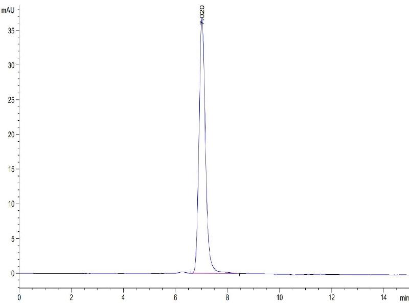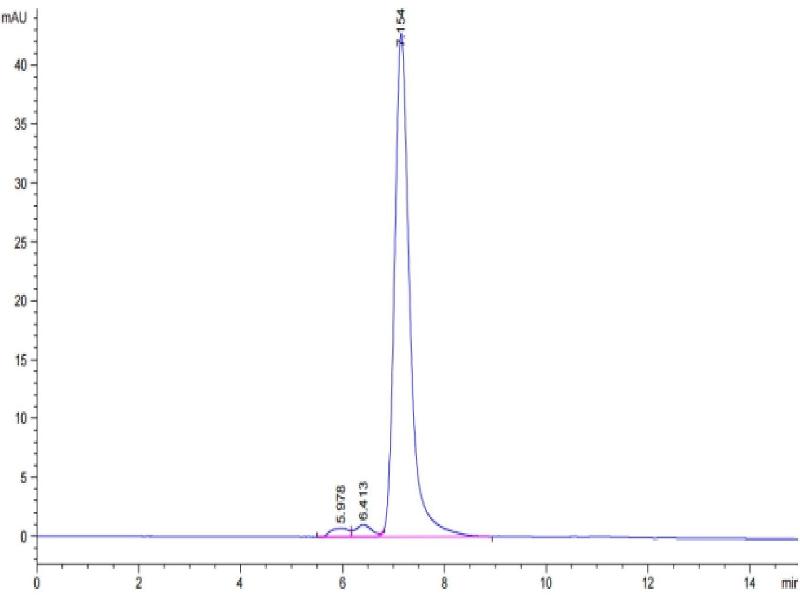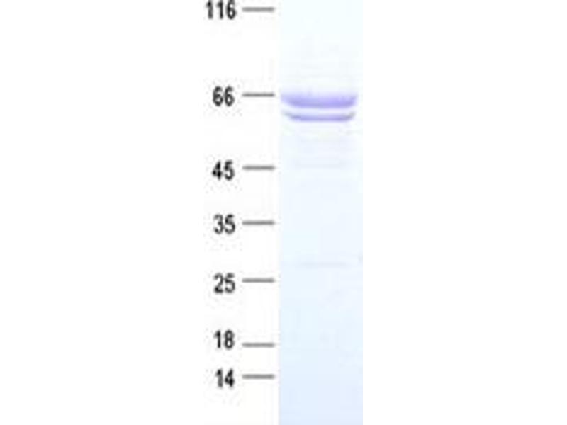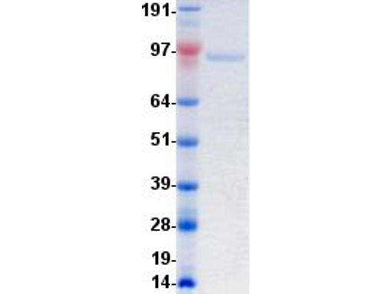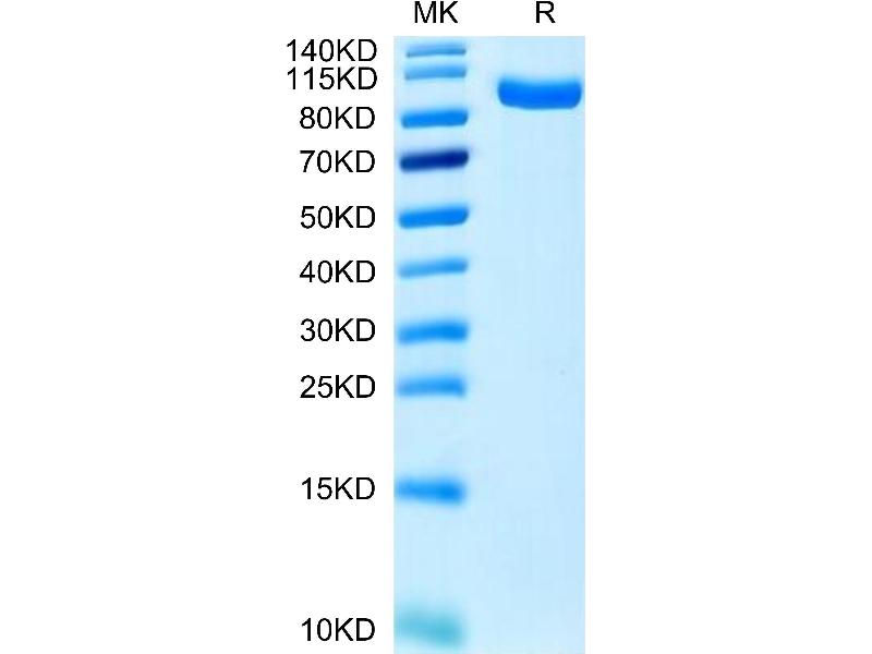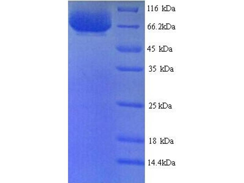 The purity of the protein is greater than 90 % as determined by SDS-PAGE and Coomassie blue staining.