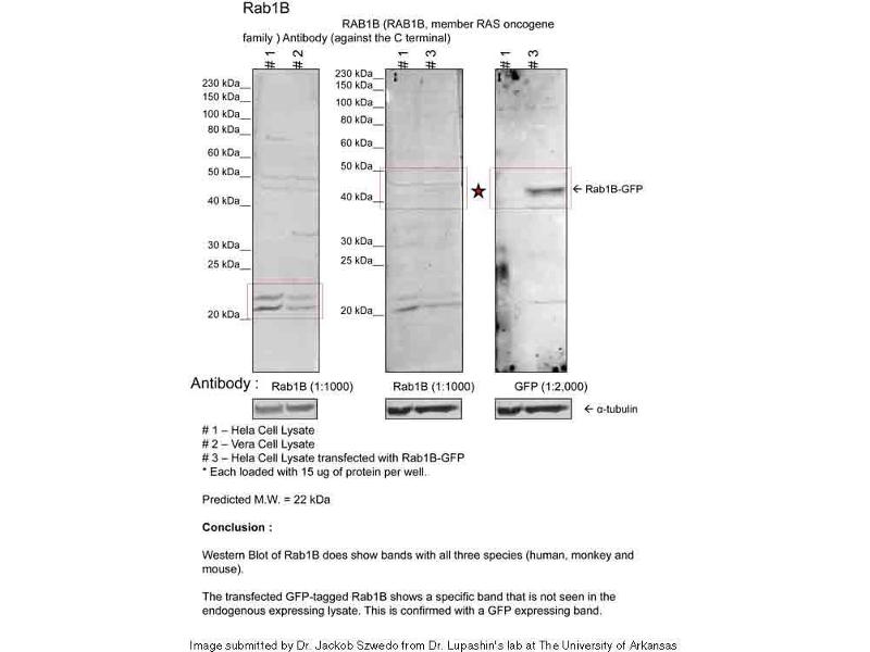 RAB1B, member RAS oncogene family (RAB1B) 抗体 RAB1A, member RAS oncogene family (RAB1A) 抗体 RAB1B, member RAS oncogene family (Rab1b) 抗体 RAB1B, member RAS oncogene family b (rab1bb) 抗体 1110011F09Rik 抗体 RAB1B 抗体 Rab1bl 抗体 wu:fc83b07 抗体 zgc:86773 抗体