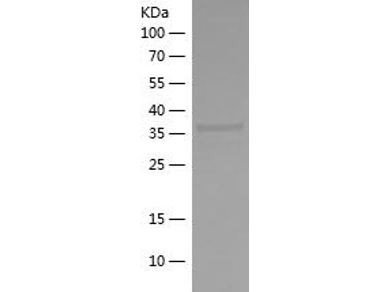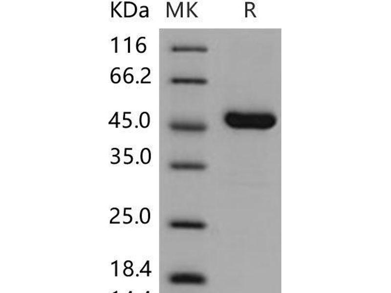 The purity of the protein is greater than 85 % as determined by SDS-PAGE and Coomassie blue staining.