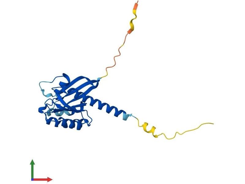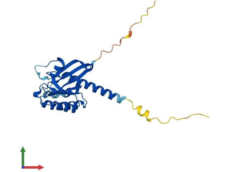 This gene encodes a member of a subfamily of Ras-related GTPases. The encoded protein is involved in regulating p38 MAPK-dependent signaling cascades related to cellular stress. This protein also cooperates with nerve growth factor to promote neuronal development and regeneration. Alternate splicing results in multiple transcript variants. [provided by RefSeq, Feb 2012].
