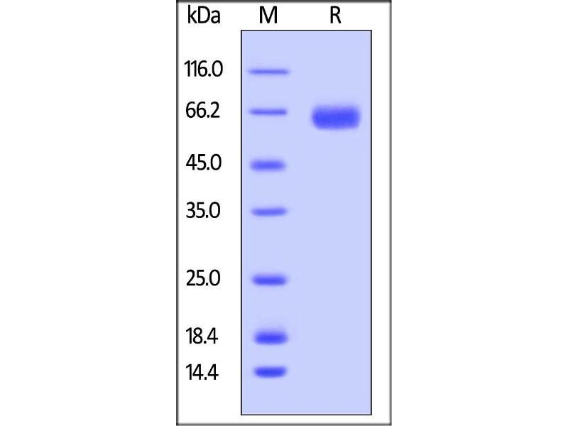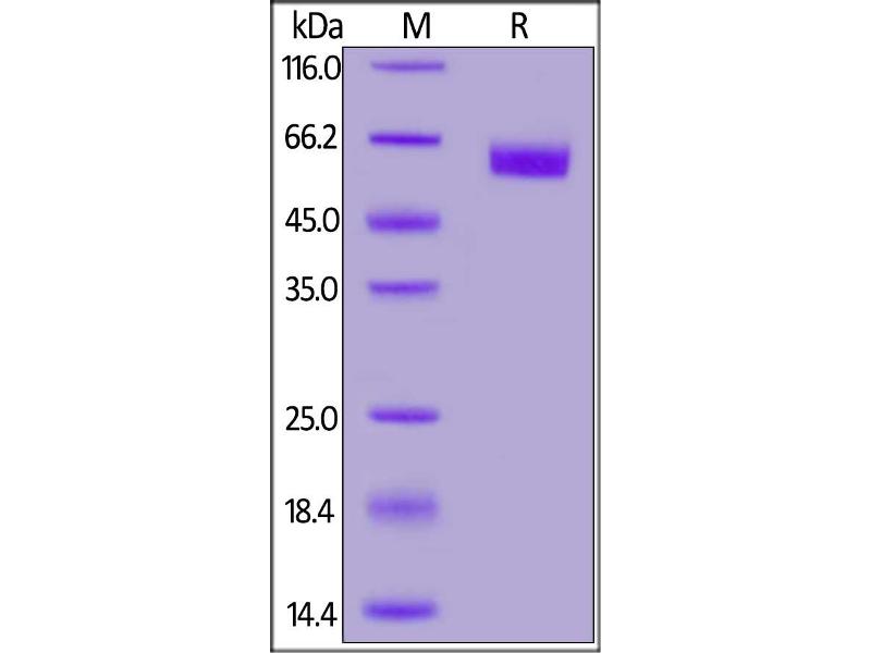 The purity of the protein is greater than 95 % as determined by SDS-PAGE and Coomassie blue staining.