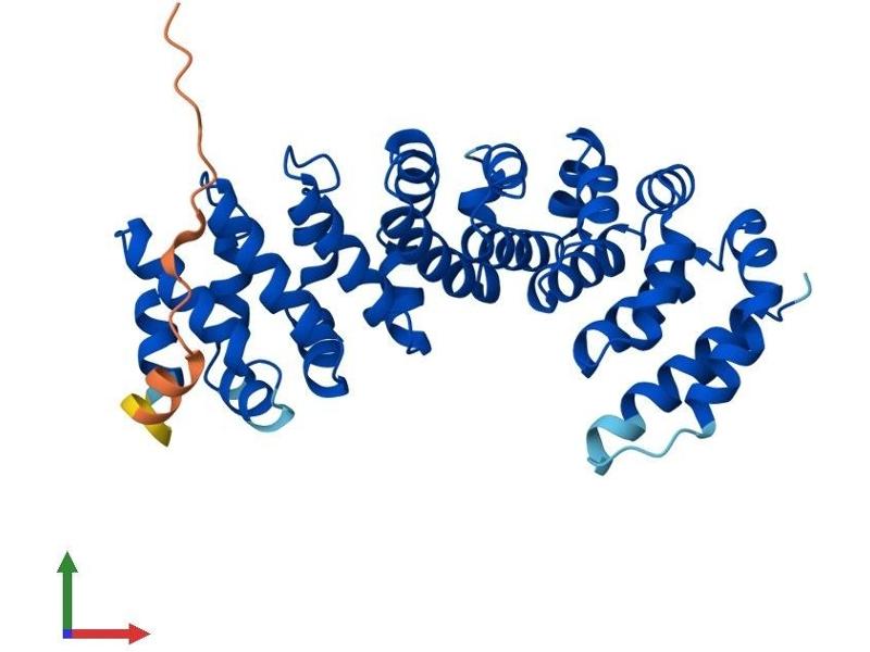 This gene encodes a protein with no known function but with slight similarity to a yeast vacuolar protein. The gene is located in a region deleted in pediatric rhabdoid tumors of the brain, kidney and soft tissues, but mutations in this gene have not been associated with the disease. [provided by RefSeq, Jul 2008].