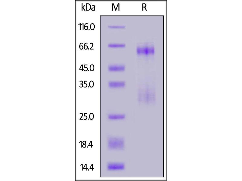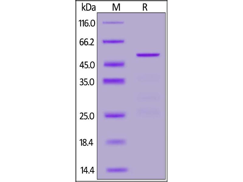 The purity of the protein is greater than 85 % as determined by SDS-PAGE and Coomassie blue staining.