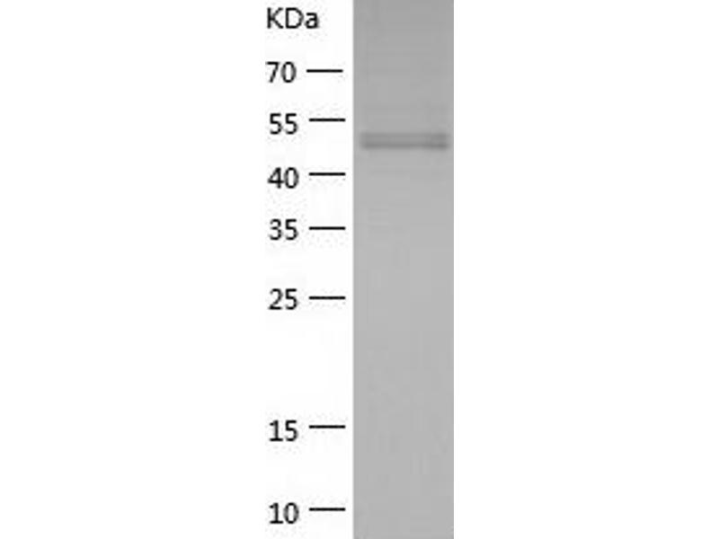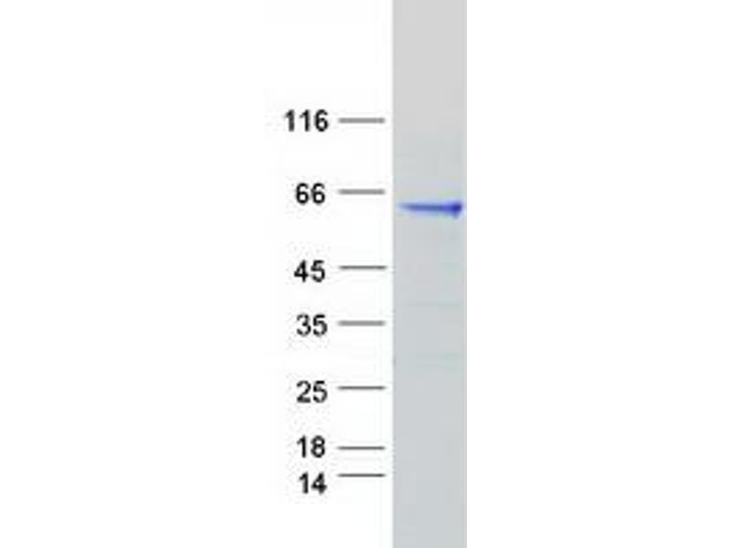 The purity of the protein is greater than 85 % as determined by SDS-PAGE and Coomassie blue staining.