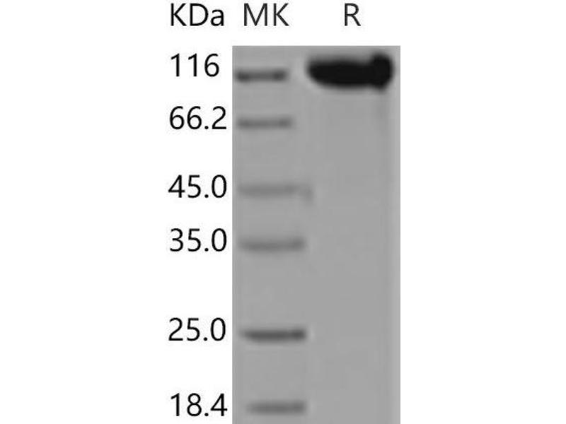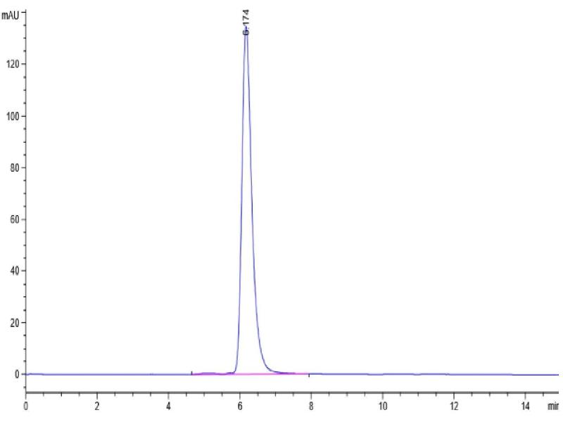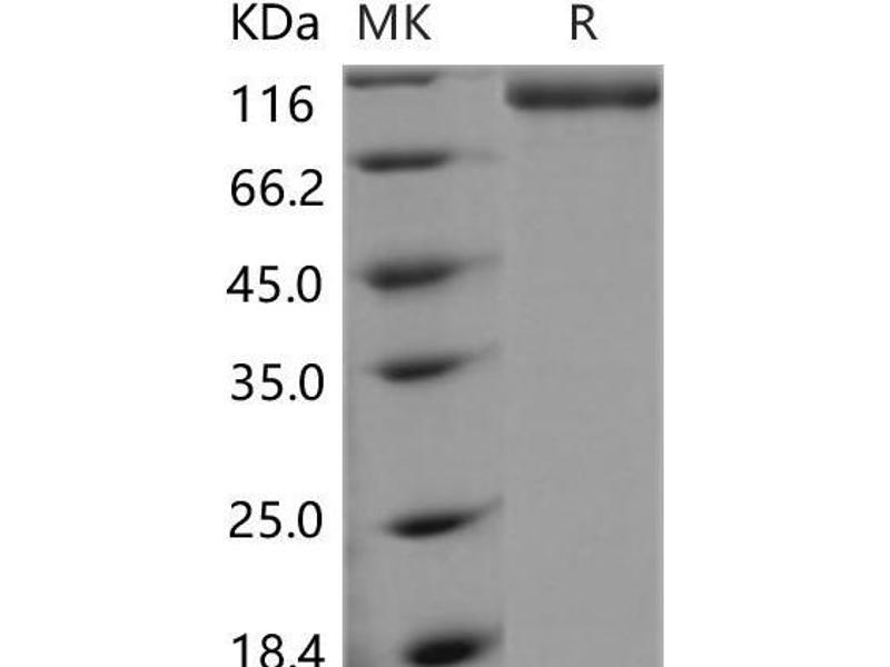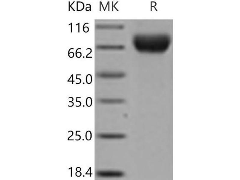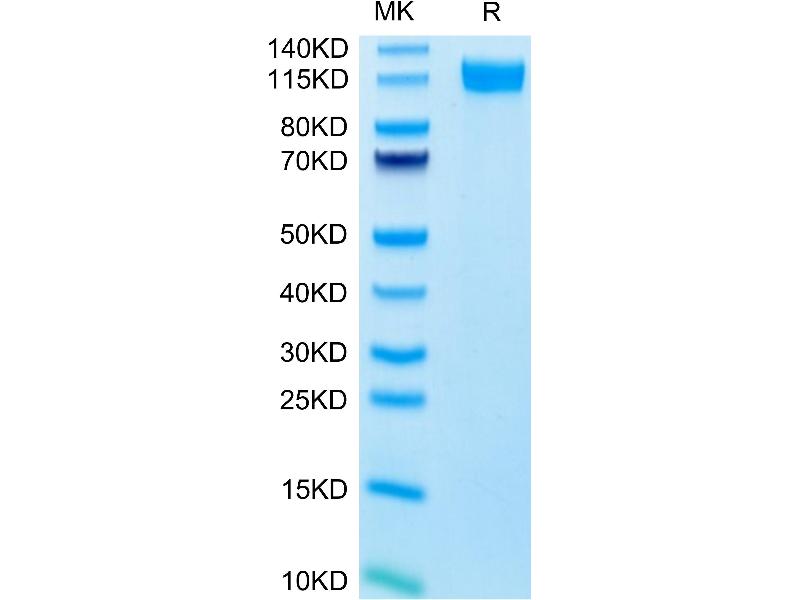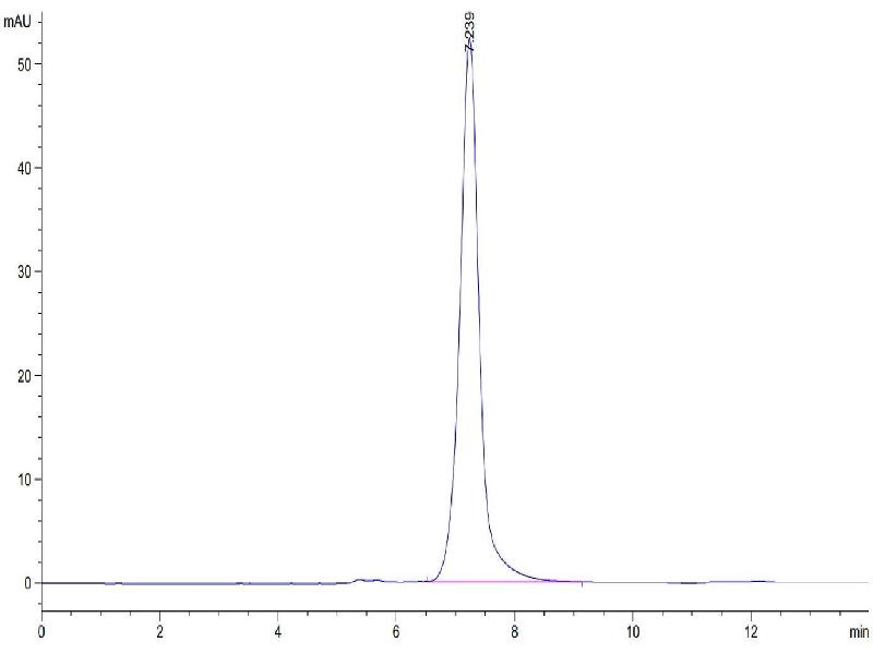 The purity of the protein is greater than 85 % as determined by SDS-PAGE and Coomassie blue staining.