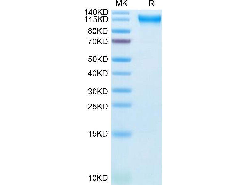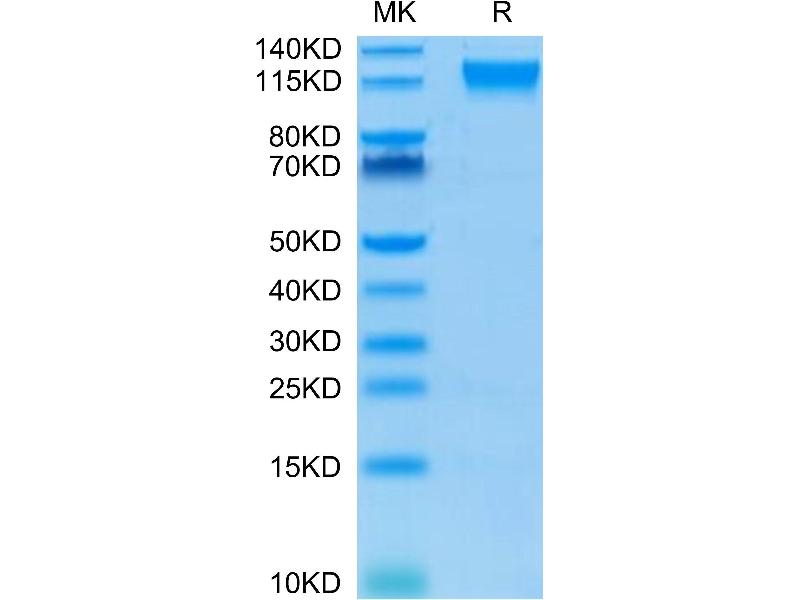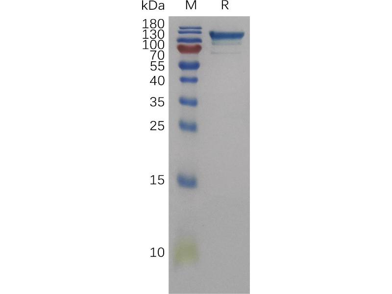 The purity of the protein is greater than 85 % as determined by SDS-PAGE and Coomassie blue staining.
