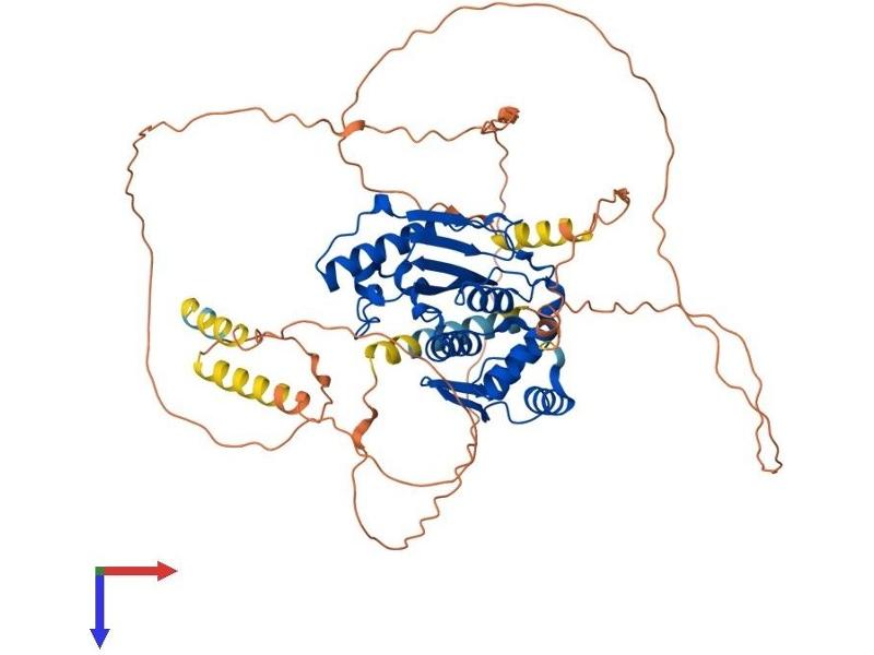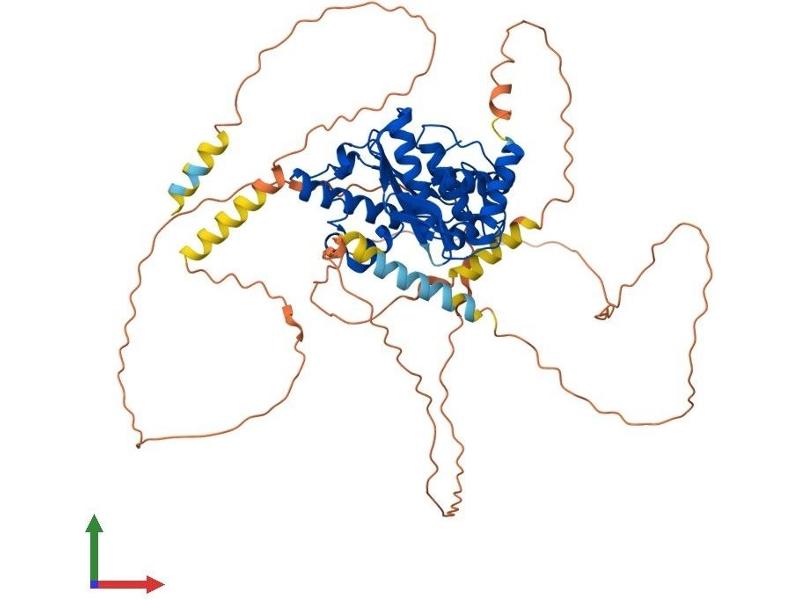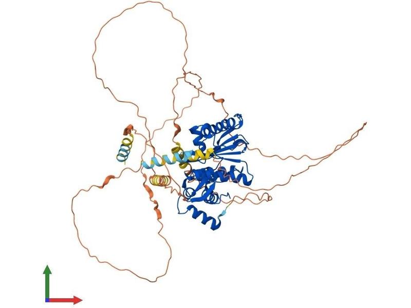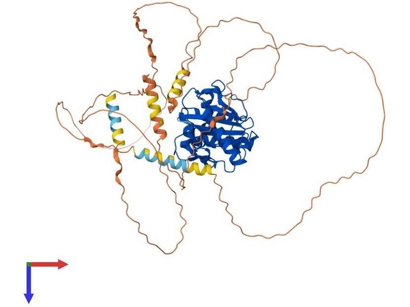 SUMO1 (UBL1\; MIM 601912) is a small ubiquitin-like protein that can be covalently conjugated to other proteins. SENP2 is one of a group of enzymes that process newly synthesized SUMO1 into the conjugatable form and catalyze the deconjugation of SUMO1-containing species.[supplied by OMIM, Apr 2004].