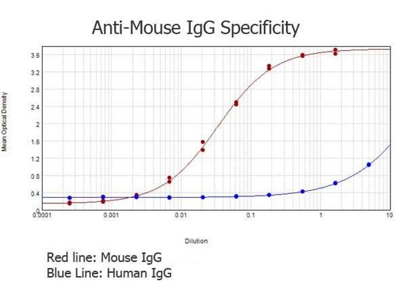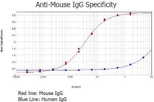 Immunogen: Anti-Mouse IgG was produced by repeated immunization with mouse IgG whole molecule in rabbit