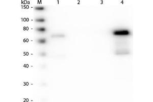 - Assay by immunoelectrophoresis resulted in a single precipitin arc against anti-Fluorescein, anti-Goat Serum, Chicken IgM and Chicken Serum. No reaction was observed against other chicken heavy or light chain proteins.