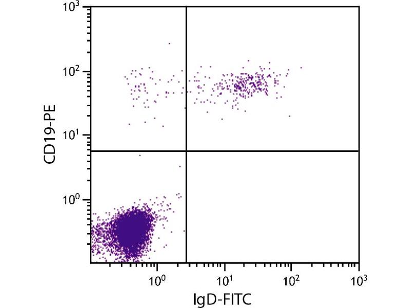 - Reacts with the heavy chain of human IgD as demonstrated by ELISA and flow cytometry.