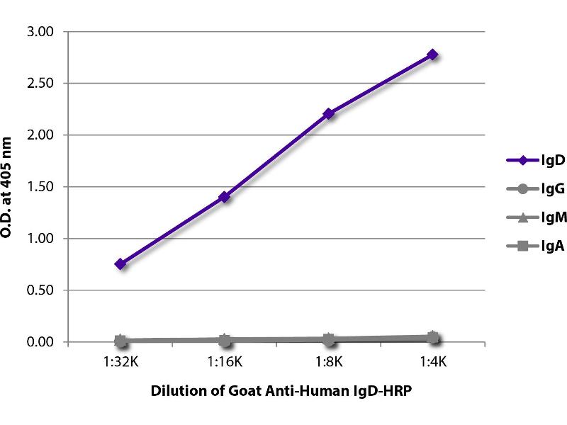 - Reacts with the heavy chain of human IgD as demonstrated by ELISA and flow cytometry.
