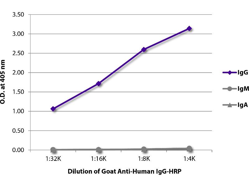 - Reacts with the heavy chain of human IgG as demonstrated by ELISA and flow cytometry.