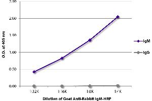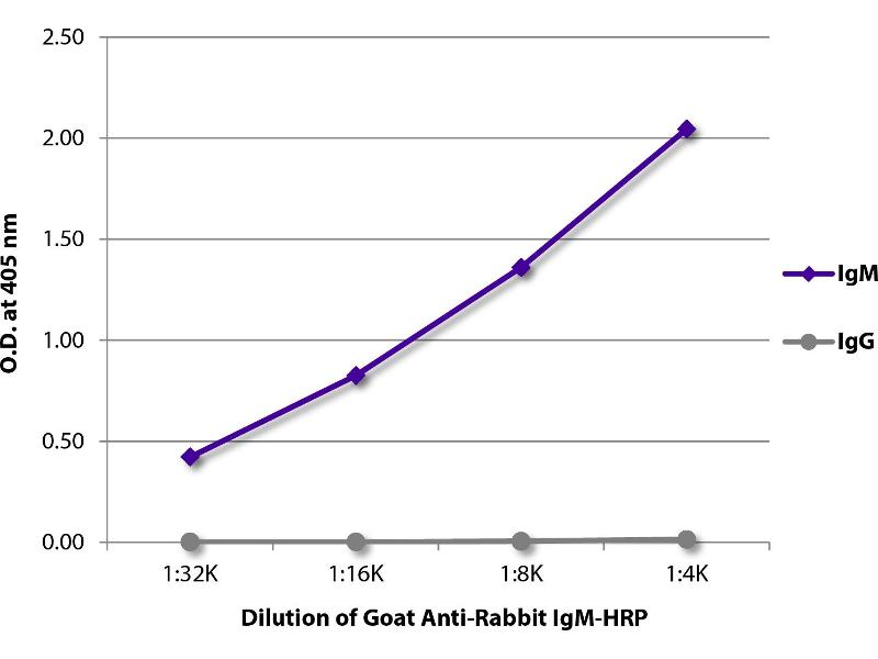 Reacts with the heavy chain of rabbit IgM as demonstrated by ELISA.