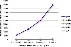 Working Dilutions: Flow Cytometry FITC, BIOT, and AF488 conjugates 1 g/106 cells PE, CY5, and AF647 conjugates 0.1 g/106 cells For flow cytometry, the suggested use of these reagents is in a final volume of 100 L ELISA AP conjugate 1:1,000 - 1:4,000 HRP conjugate 1:4,000 - 1:8,000 BIOT conjugate 1:5,000 - 1:10,000 FLISA FITC and AF488 conjugates 1:200 - 1:400 AF555 conjugate 1:100 - 1:400 PE, CY5, and AF647 conjugates 1 g/mL