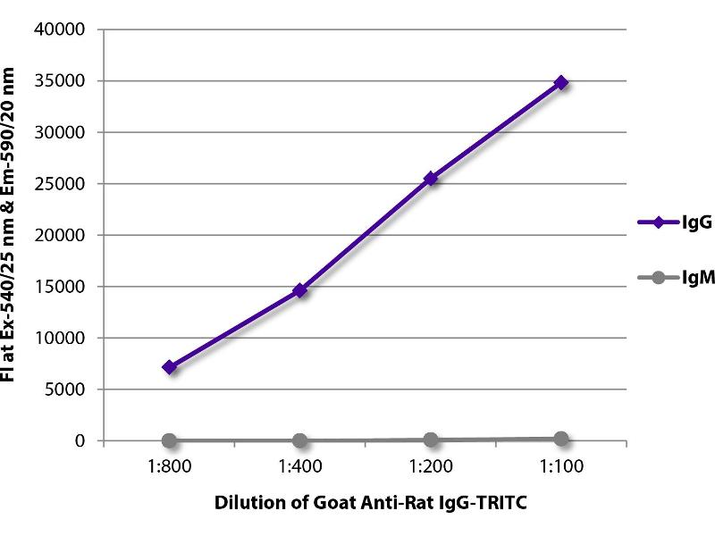 - Reacts with the heavy chain of rat IgG as demonstrated by ELISA.