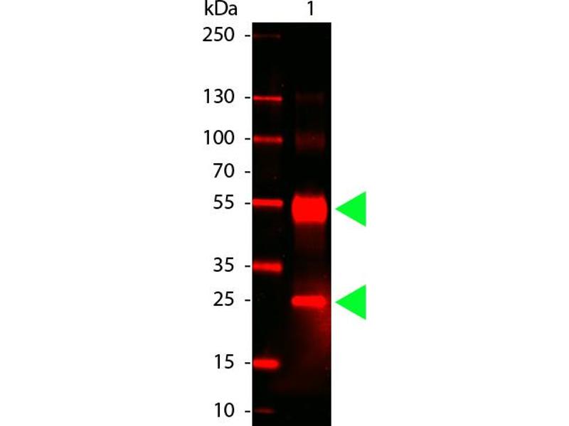 Anti-Human IgG (H&L) DyLight 680 has been tested by western blot and is designed for immunofluorescence microscopy, fluorescence based plate assays (FLISA) and fluorescent western blotting. This product is also suitable for multiplex analysis, including multicolor imaging, utilizing various commercial platforms. The emission spectra for this DyLight™ conjugate match the principle output wavelengths of most common fluorescence instrumentation