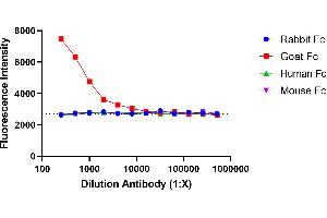 - No known cross reactivity. No cross reactivtiy to mouse IgG, human IgG, goat IgG. Other species were not tested.