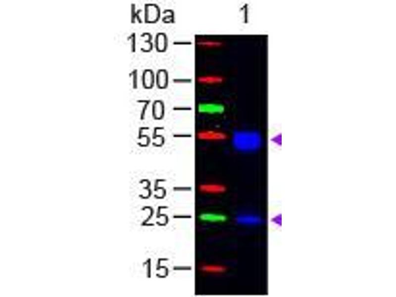 Application Note: This product is designed for immunofluorescence microscopy, fluorescence based plate assays (FLISA) and fluorescent western blotting. This product is also suitable for multiplex analysis, including multicolor imaging, utilizing various commercial platforms requiring extremely low background levels, absence of F(c) mediated binding, lot-to-lot consistency, high titer and specificity.