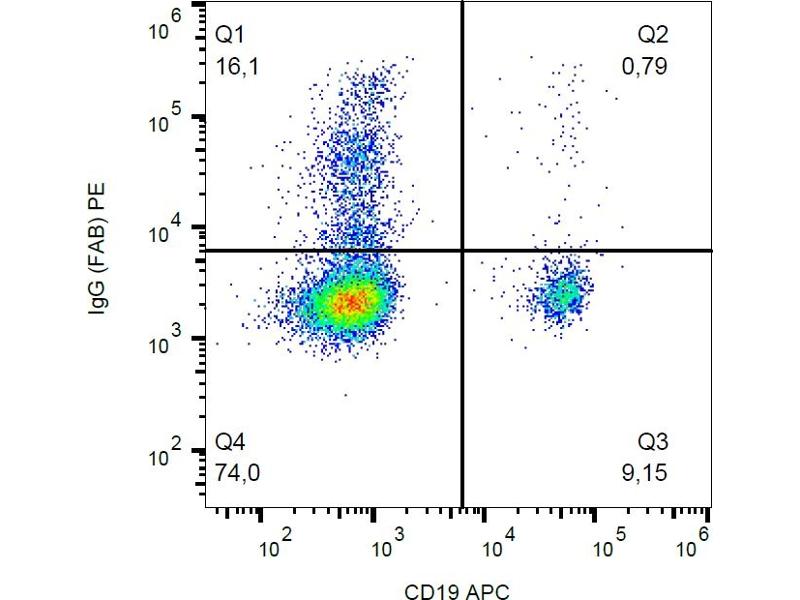 Each IgG is composed of four peptide chains, two class γ heavy chains of about 50 kDa and two light chains of about 25 kDa. The table below contains selection of anti-human secondaries for IgG heavy and light chain (H/L) as well as for their fragments Fc and F(ab).