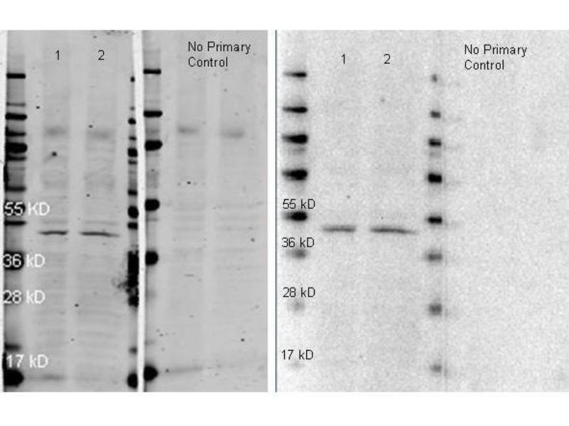 Anti-IgG, Fc fragment specific antibodies may be used to detect native IgG primary antibodies without binding to the 25 kDa band of reduced and denatured IgG light chains on Western blots.