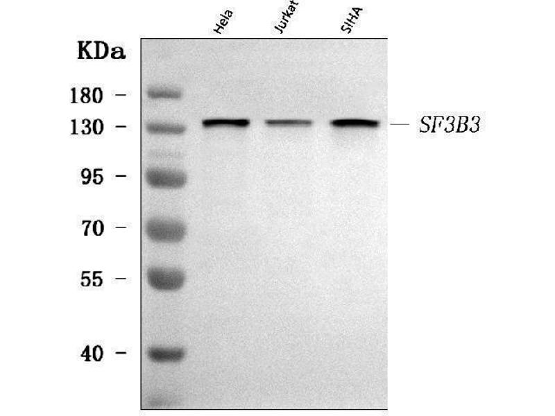 This gene encodes subunit 3 of the splicing factor 3b protein complex. Splicing factor 3b, together with splicing factor 3a and a 12S RNA unit, forms the U2 small nuclear ribonucleoproteins complex (U2 snRNP). The splicing factor 3b/3a complex binds pre-mRNA upstream of the intron's branch site in a sequence independent manner and may anchor the U2 snRNP to the pre-mRNA. Splicing factor 3b is also a component of the minor U12-type spliceosome. Subunit 3 has also been identified as a component of the STAGA (SPT3-TAF(II)31-GCN5L acetylase) transcription coactivator-HAT (histone acetyltransferase) complex, and the TFTC (TATA-binding-protein-free TAF(II)-containing complex). These complexes may function in chromatin modification, transcription, splicing, and DNA repair. [provided by RefSeq, Jul 2008].