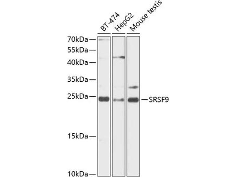 The protein encoded by this gene is a member of the serine/arginine (SR)-rich family of pre-mRNA splicing factors, which constitute part of the spliceosome. Each of these factors contains an RNA recognition motif (RRM) for binding RNA and an RS domain for binding other proteins. The RS domain is rich in serine and arginine residues and facilitates interaction between different SR splicing factors. In addition to being critical for mRNA splicing, the SR proteins have also been shown to be involved in mRNA export from the nucleus and in translation. Two pseudogenes, one on chromosome 15 and the other on chromosome 21, have been found for this gene. [provided by RefSeq, Sep 2010].