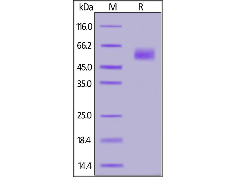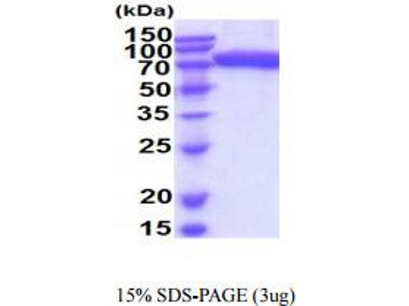 The purity of the protein is greater than 85 % as determined by SDS-PAGE and Coomassie blue staining.