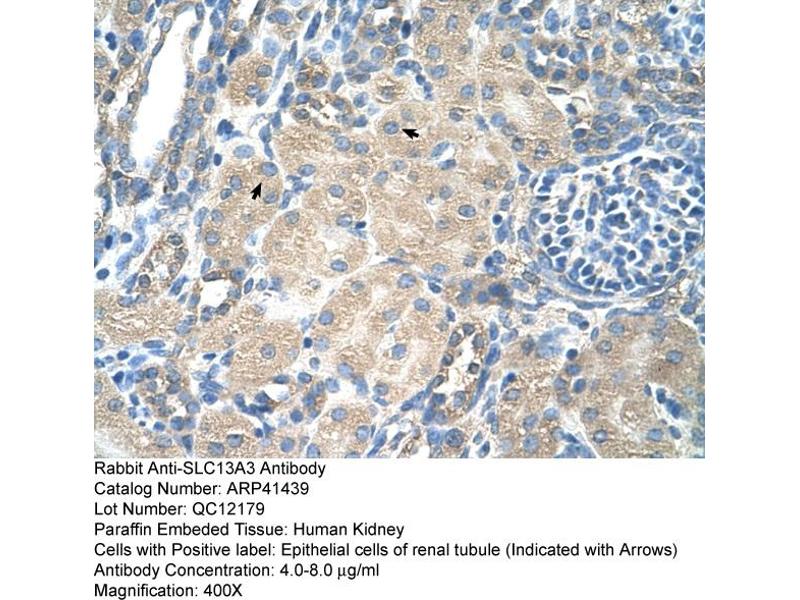 Mammalian sodium-dicarboxylate cotransporters transport succinate and other Krebs cycle intermediates. They fall into 2 categories based on their substrate affinity: low affinity and high affinity. Both the low- and high-affinity transporters play an important role in the handling of citrate by the kidneys. The protein encoded by this gene represents the high-affinity form. Alternatively spliced transcript variants encoding different isoforms have been found for this gene, although the full-length nature of some of them have not been characterized yet. [provided by RefSeq, Jul 2008].