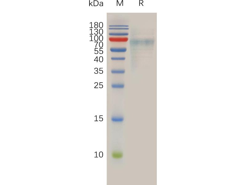 The purity of the protein is greater than 90 % as determined by SDS-PAGE and Coomassie blue staining.