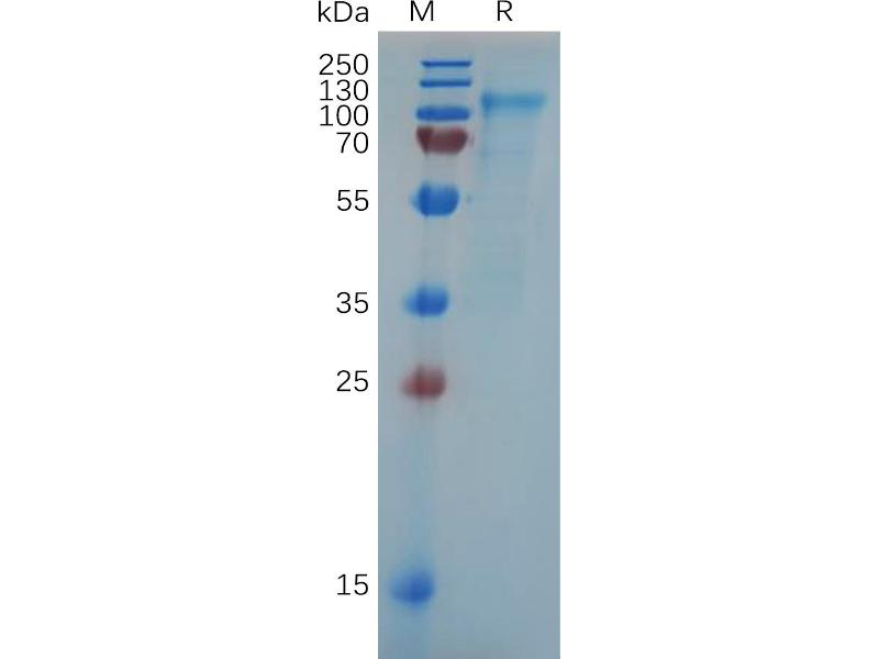 The purity of the protein is greater than 85 % as determined by SDS-PAGE and Coomassie blue staining.