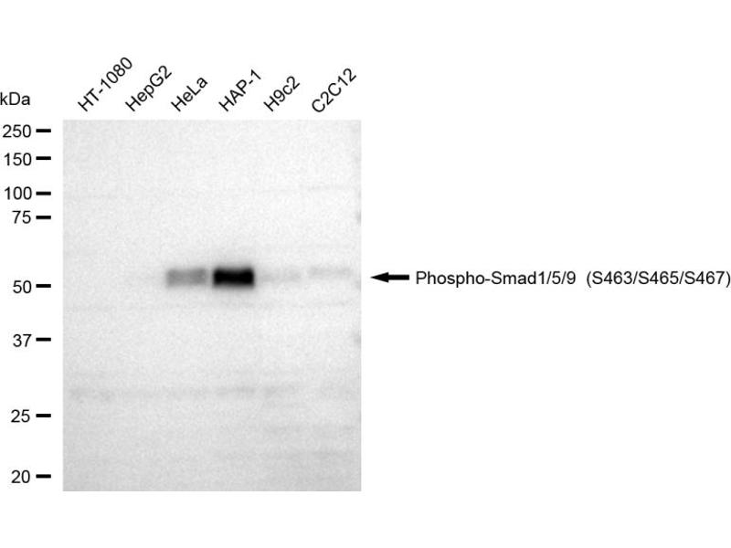 SMAD1 适用: 人, 小鼠 WB, IHC (p), IF (cc) 宿主: 兔 Monoclonal 2D9 unconjugated