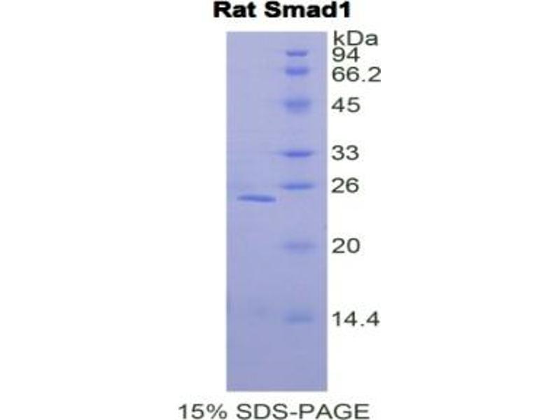 The protein encoded by this gene belongs to the SMAD, a family of proteins similar to the gene products of the Drosophila gene 'mothers against decapentaplegic' (Mad) and the C. elegans gene Sma. SMAD proteins are signal transducers and transcriptional modulators that mediate multiple signaling pathways. This protein mediates the signals of the bone morphogenetic proteins (BMPs), which are involved in a range of biological activities including cell growth, apoptosis, morphogenesis, development and immune responses. In response to BMP ligands, this protein can be phosphorylated and activated by the BMP receptor kinase. The phosphorylated form of this protein forms a complex with SMAD4, which is important for its function in the transcription regulation. This protein is a target for SMAD-specific E3 ubiquitin ligases, such as SMURF1 and SMURF2, and undergoes ubiquitination and proteasome-mediated degradation. Alternatively spliced transcript variants encoding the same protein have been observed. [provided by RefSeq, Jul 2008].
