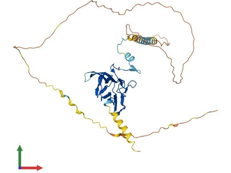 This gene encodes a protein that contains a coiled-coil motif and C-terminal forkhead-associated (FHA) domain. The encoded protein functions as a transcriptional coactivator that increases c-Myc activity and inhibits transforming growth factor beta (TGF-beta) and nuclear factor kappa-B (NF-kB) signaling. The encoded protein also regulates the stability of cyclin D1 mRNA, and may play a role in cell proliferation and cancer progression. Mutations in this gene are a cause of psychomotor retardation, epilepsy, and craniofacial dysmorphism (PMRED). [provided by RefSeq, Mar 2012].