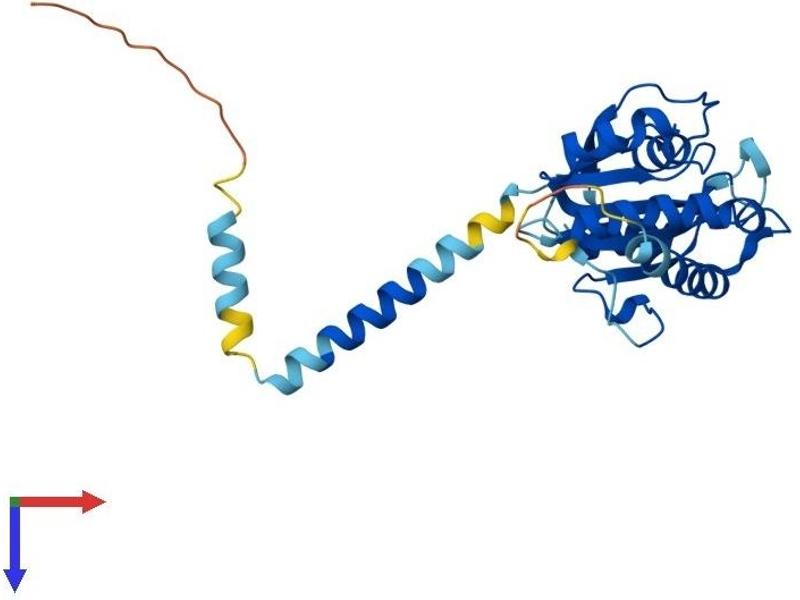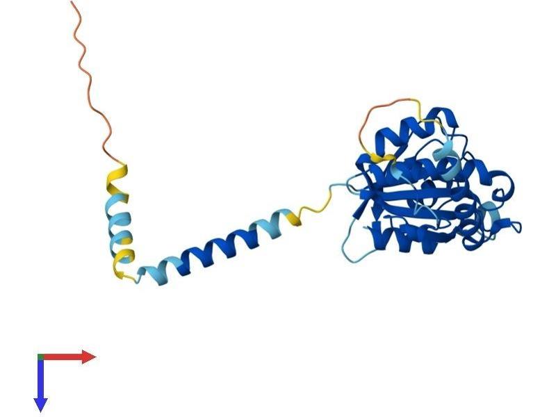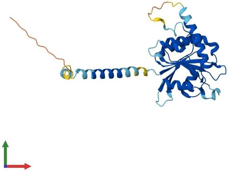 The protein encoded by this gene has similarity to mouse protein which is a subunit of the signal recognition particle receptor (SR). This subunit is a transmembrane GTPase belonging to the GTPase superfamily. It anchors alpha subunit, a peripheral membrane GTPase, to the ER membrane. SR is required for the cotranslational targeting of both secretory and membrane proteins to the ER membrane. [provided by RefSeq, Jul 2008].