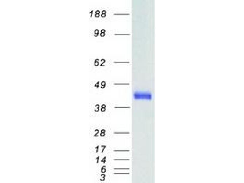 The purity of the protein is greater than 95 % as determined by SDS-PAGE and Coomassie blue staining.