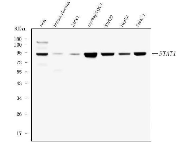STAT1 适用: 人 WB, IHC, ELISA, IF 宿主: 兔 Monoclonal 2H10 unconjugated Recombinant Antibody