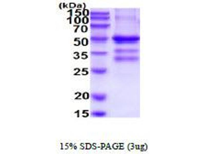 The purity of the protein is greater than 95 % as determined by SDS-PAGE and Coomassie blue staining.