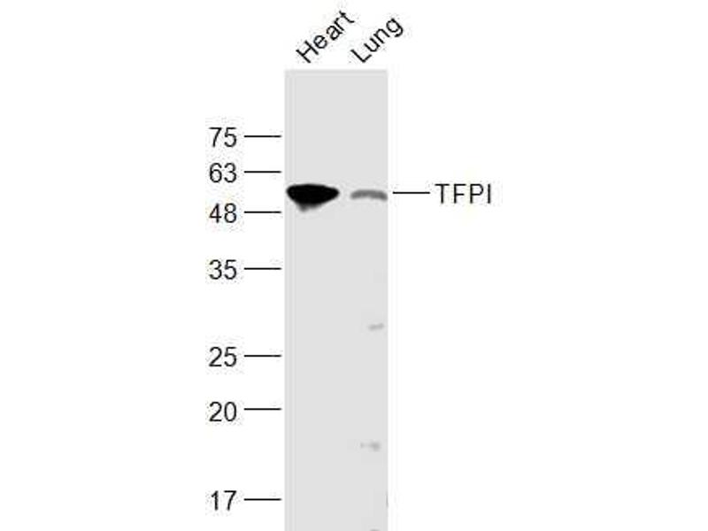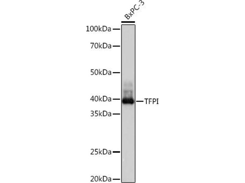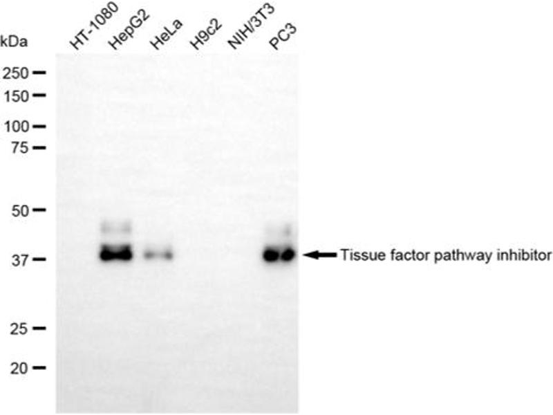 This gene encodes a protease inhibitor that regulates the tissue factor (TF)-dependent pathway of blood coagulation. The coagulation process initiates with the formation of a factor VIIa-TF complex, which proteolytically activates additional proteases (factors IX and X) and ultimately leads to the formation of a fibrin clot. The product of this gene inhibits the activated factor X and VIIa-TF proteases in an autoregulatory loop. The encoded protein is glycosylated and predominantly found in the vascular endothelium and plasma in both free forms and complexed with plasma lipoproteins. Several alternatively spliced transcript variants of this gene have been described, but the full-length nature of some of these variants has not been confirmed. [provided by RefSeq, Jul 2008].